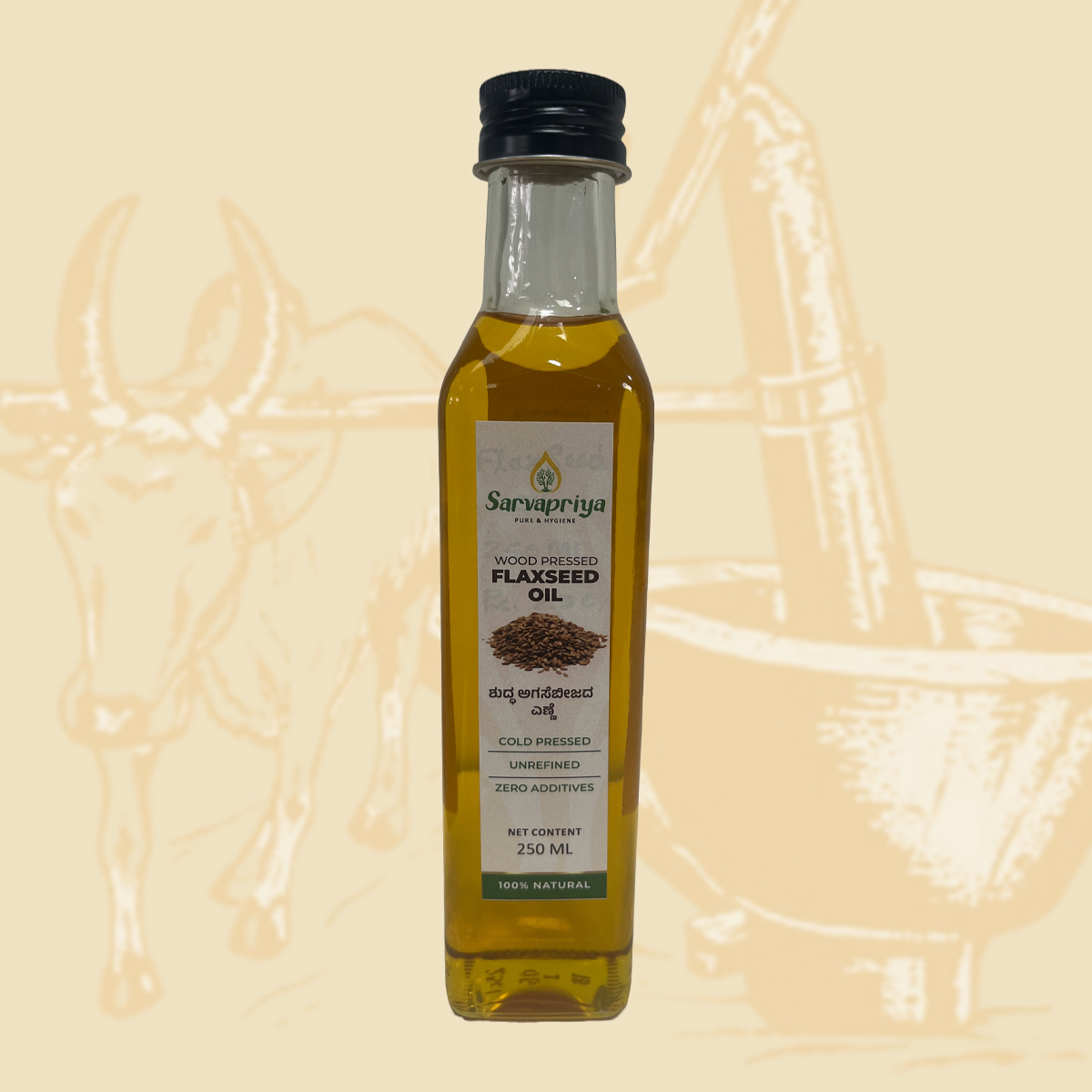 Sarvapriya Wood Pressed Flaxseed Oil is 100% natural, cold-pressed, and unrefined—packed with Omega-3 fatty acids, antioxidants, and essential nutrients. A heart-healthy oil perfect for daily wellness, skin, and hair care.